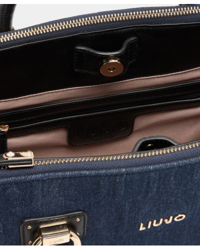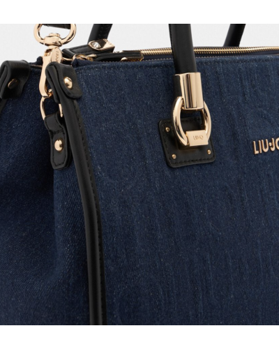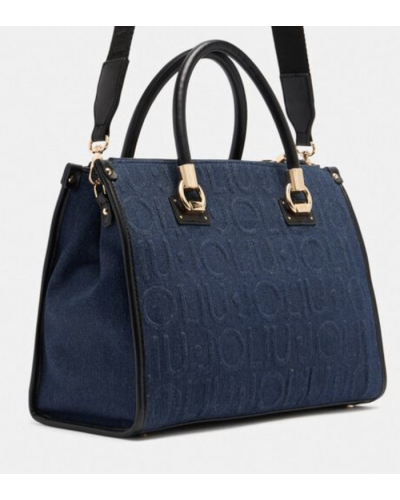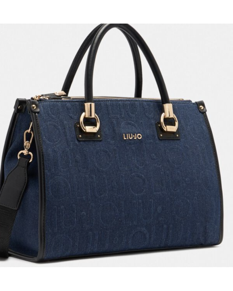 BORSA DUE MANICI CON TRACOLLA IN DENIM LOGATA